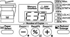 При окончании тонера в тонер-картридже загорается соответствующий индикатор на панели управления аппарата. Если Вы продолжите копирование при горящем индикаторе отсутствия тонера, на дисплее загорится код "ЕЗЗ" и копирование прекратится. Замените и печатайте с новым.