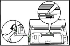 Переместите рукоять фиксации на себя в положение "UNLOCK", а затем оттяните фиксатор вправо, в направлении стрелки, изображенной на иллюстрации.
