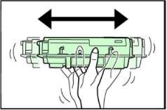 Потрясите новый картридж 5-6 раз в горизонтальном направлении, чтобы тонер внутри равномерно распределился по объему.