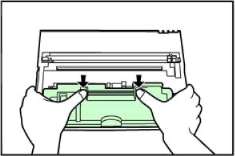 Крепко удерживая блок формирования изображения, нажмите в местах с маркировкой "PUSH HERE" таким образом, чтобы он защелкнулся в рабочем положении.