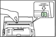 Переместите зеленую рукоять очистителя скоротрона 2-3 раза из стороны в сторону и оставьте ее в положении "CLEANER HOME POSITION".