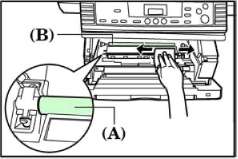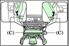 После чистки установите выступы (С) блока в направляющие внутри аппарата и задвиньте блок формирования изображения до упора в аппарат.