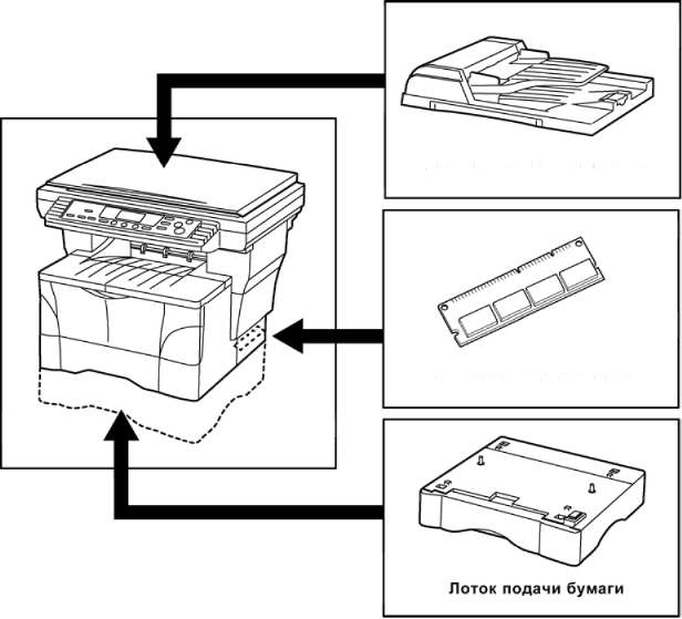Установка дополнительной памяти повышает количество изображений, которое может быть отсканировано аппаратом в память за один прием.