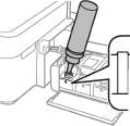 4. Заправьте контейнер для чернил чернилами надлежащего цвета до верхней линии на контейнере для чернил.