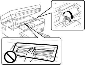 8- Если печатающая головка не находится в показанном ниже положении, передвиньте ее рукой самостоятельно.