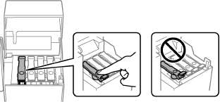 При хранении и транспортировке не наклоняйте бутылки и не подвергайте их ударам или изменению температур. В противном случае чернила могут вытечь из бутылки даже при плотно закрытой крышке. Держите строго вертикально, когда закрываете крышку, и принимайте соответствующие меры предосторожности для предотвращения вытекания при транспортировке.