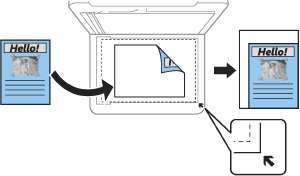 Определение области сканирования и автоматическое увеличение или уменьшение оригинала для размещения на выбранном размере бумаги. Если вокруг оригинала имеются белые поля, белые поля от угловой отметки на стекле сканера определяются как область сканирования, однако поля на противоположной стороне могут быть обрезаны.