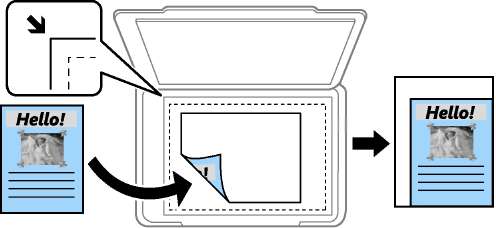 Определяет область сканирования и автоматически увеличивает или уменьшает оригинал в соответствии с выбранным форматом бумаги. Если оригинал имеет белые поля по всему периметру, белые поля от угловой отметки на стекле сканера определяются областью сканирования, а поля на противоположной стороне могут обрезаться.