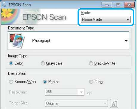 Выберите Applications (Программы) > Epson Software > EPSON Scan. Выберите Home Mode (Простой режим).