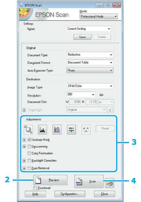 Выберите Professional Mode (Профессиональный режим) из списка Mode (Режим). Нажмите Preview (Просмотр).