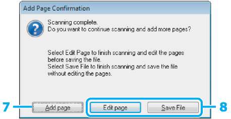 Если флажок Show Add Page dialog after scanning (Показать диалог Добавление изображений после сканирования) снят, Epson Scan автоматически сохранит документ без отображения окна Add Page Confirmation (Подтв. добавления изобр.).