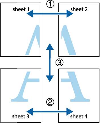 7. Положите край Sheet 1 и Sheet 2 сверху Sheet 3 и Sheet 4 и совместите метки пересечения, а затем временно соедините их вместе с обратной стороны липкой лентой.