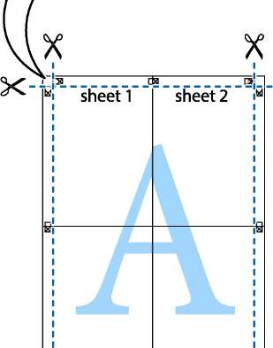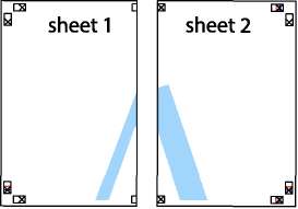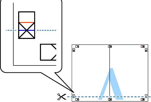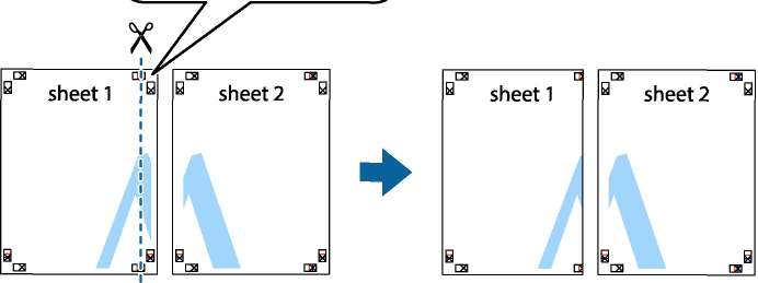 1. Подготовьте Sheet 1 и Sheet 2. Отрежьте поля Sheet 1 по синей вертикальной линии, проходящей через центр верхней и нижней метки пересечения.