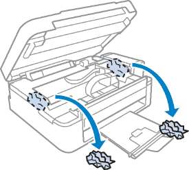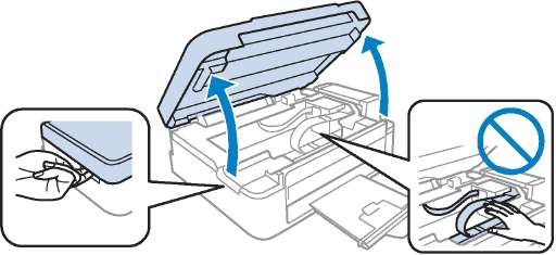 Будьте осторожны и не тяните за кабели или тюбики с чернилами, и не трогайте другие компоненты внутри устройства без необходимости. В противном случае чернила могут вытечь, или устройство может быть повреждено.
