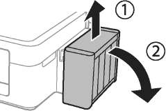 Если после заправки картриджа до верхней линии в емкости остаются чернила, плотно закройте верхнюю часть крышки и храните емкость для дальнейшего использования в вертикальном положении.