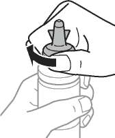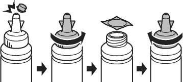 3. Отломите колпачок крышки, снимите крышку с бутылки с чернилами, удалите пломбу и затем заверните крышку.