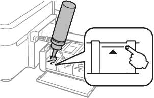 4. Заправьте контейнер для чернил надлежащего цвета до верхней линии на контейнере.
