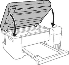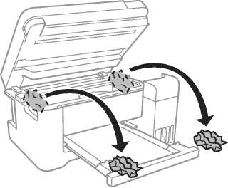 Откройте сканер и извлеките бумагу или защитный материал из принтера. Выключите и вновь включите питание.