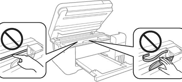 Не прикасайтесь к плоскому белому шлейфу, транслюцентной пленке и чернильным трубкам внутри устройства. Это может привести к выходу принтера из строя.