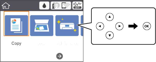Чтобы выбрать элемент, переместите фокус на этот элемент с помощью кнопок, затем нажмите кнопку ОК.