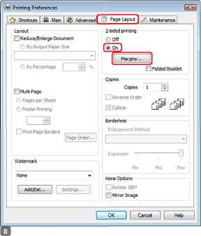 Перейдите на вкладку Page Layout (Макет), затем для 2-sided printing (Двусторонняя печать) выберите On (Включить).