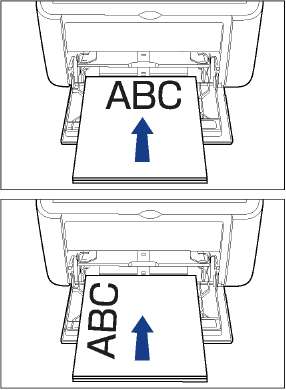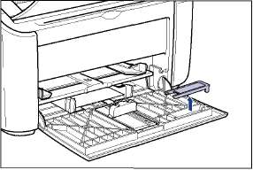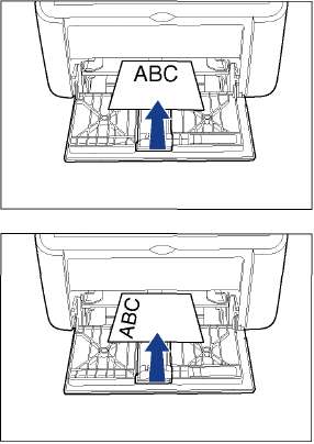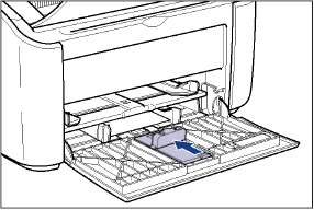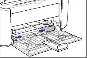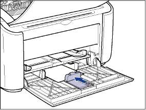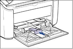 Загрузка бумаги в лоток ручной подачи производится следующим образом. Всегда загружайте бумагу в лоток ручной подачи в продольном направлении.