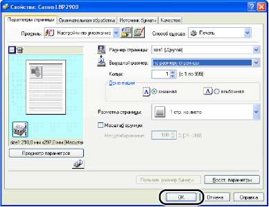 По необходимости, установите для параметра [Выходной размер] значение (размер бумаги), соответствующее пользовательскому размеру бумаги, загруженной в принтер.
