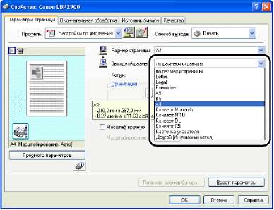 Если размер бумаги (название пользовательского размера бумаги), загруженной в универсальный лоток, совпадает с размером страницы, не изменяйте значение [По размеру страницы], так как в этом нет необходимости.