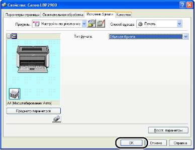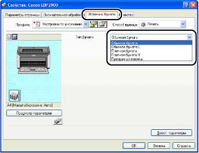 Откройте вкладку [Источник бумаги] и установите значение параметра [Тип бумаги] в соответствии с типом бумаги, загруженной в принтер.