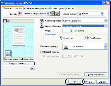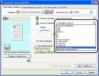 Установите для параметра [Выходной размер] значение [Карточка указателя].