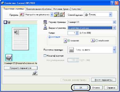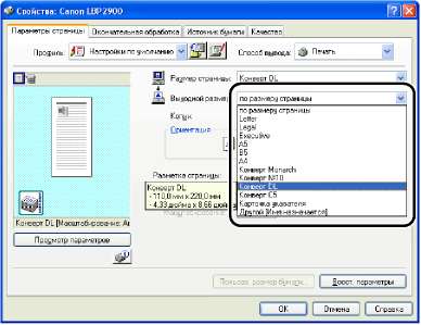 Если Вы установили для размера страницы значение [Конверт DL], [Конверт №10], [Конверт C5] или [Конверт Monarch], появится следующее сообщение, и тип бумаги будет установлен автоматически.