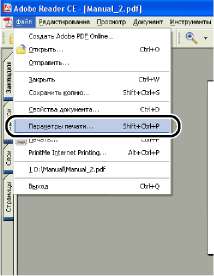С помощью программы Adobe Reader откройте файл PDF, который необходимо распечатать, затем в меню [File] (Файл) выберите [Print Setup] (Параметры печати).