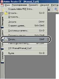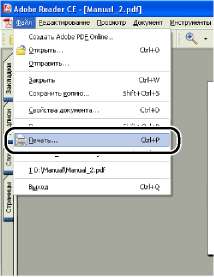 Данный раздел описывает процедуру вызова диалогового окна [Свойства документа] из приложения на примере программы Adobe Reader 6.0.