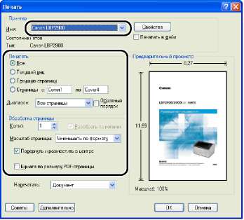 Печать документа на Canon LBP-2900