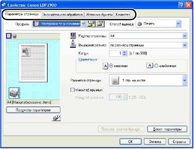 Убедитесь, что отображается одна из вкладок [Параметры страницы], [Окончательная обработка], [Источник бумаги] или [Качество], а затем выполните следующие действия.