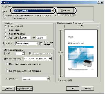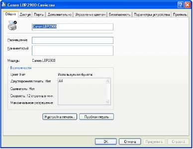 Отобразится диалоговое окно [Свойства: Canon LBP2900].