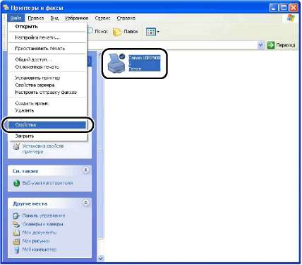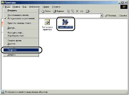 Выберите значок, соответствующий Вашему принтеру, а затем в меню [Файл] выберите пункт [Свойства].