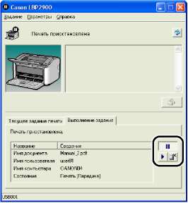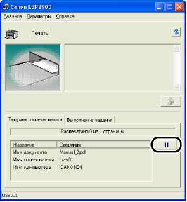 Для того, чтобы отменить или приостановить задание печати нажмите кнопку (Приостановить) на вкладке [Текущее задание печати] или на вкладке [Выполнение задания].