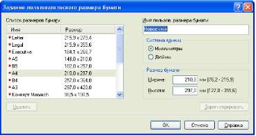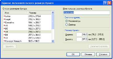 В системах Windows 98/Me можно добавить до 30 пользовательских размеров бумаги. В системах Windows 2000/XP/Server 2003 это число зависит от системного окружения.