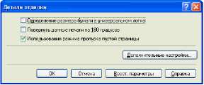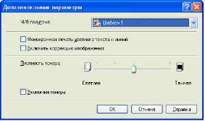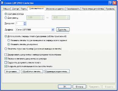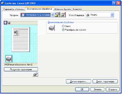 Данное диалоговое окно позволяет установить различные параметры для обработки задания печати.