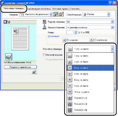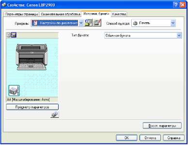На вкладке [Источник бумаги] можно настроить следующие параметры печати.