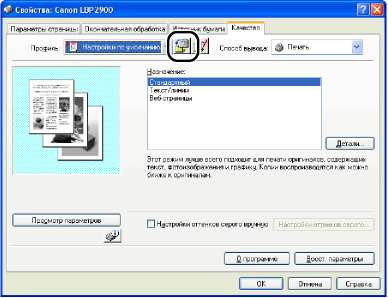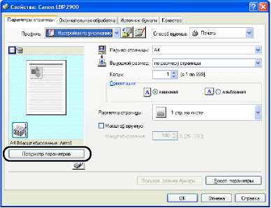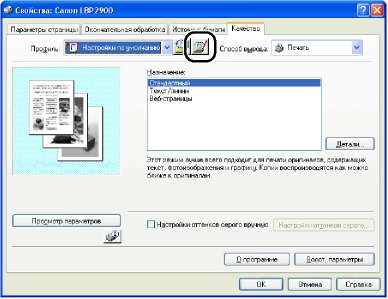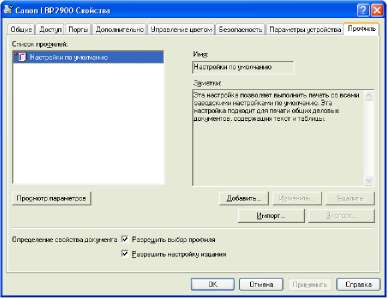 Открыв диалоговое окно [Свойства принтера] из папки [Принтеры и факсы] или [Принтеры], можно изменять настройки принтера и создавать "Профили" для часто используемых настроек.