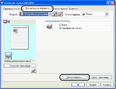На вкладке [Окончательная обработка] можно настроить следующие параметры печати.