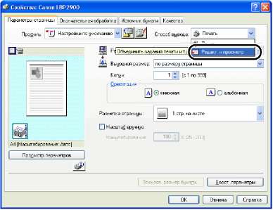 Настройка параметров печати