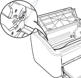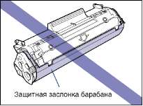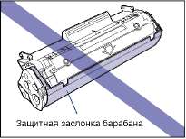 • Если Вы дотронетесь до внутреннего барабана рукой или поцарапаете его, качество печати ухудшится. Ни при каких обстоятельствах не прикасайтесь к барабану и не открывайте защитную заслонку барабана. Будьте осторожны, не касайтесь никаких других элементов, кроме указанных, и не держитесь за них. Это может привести к повреждению.