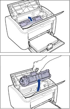 2 Поднимите тонерный картридж в направлении стрелок a , затем извлеките его b.