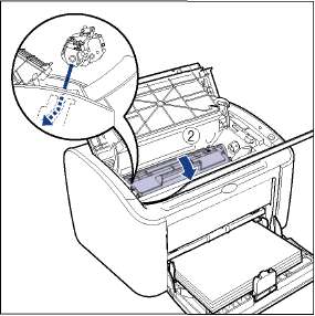 Возьмите как показано на рисунке, осторожно наклоните его 5 или 6 раз из стороны в сторону, а затем вперед и назад для того, чтобы тонер распределился равномерно внутри.