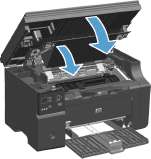2. Извлеките бумагу и закройте подающий лоток. Установите устройство на бок.