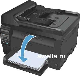 Извлеките стопку бумаги из выходного приемника, поверните листы на 180 градусов и вставьте их в лоток 1 лицевой стороной вниз.