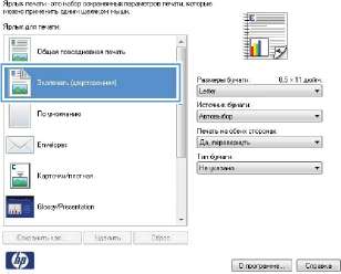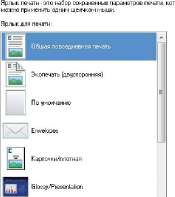 Параметры печати можно выбрать на данной вкладке или любой другой вкладке драйвера принтера. После выбора параметров на других вкладках, перед тем, как выполнить следующий шаг, возвратитесь на вкладку Ярлыки печати.